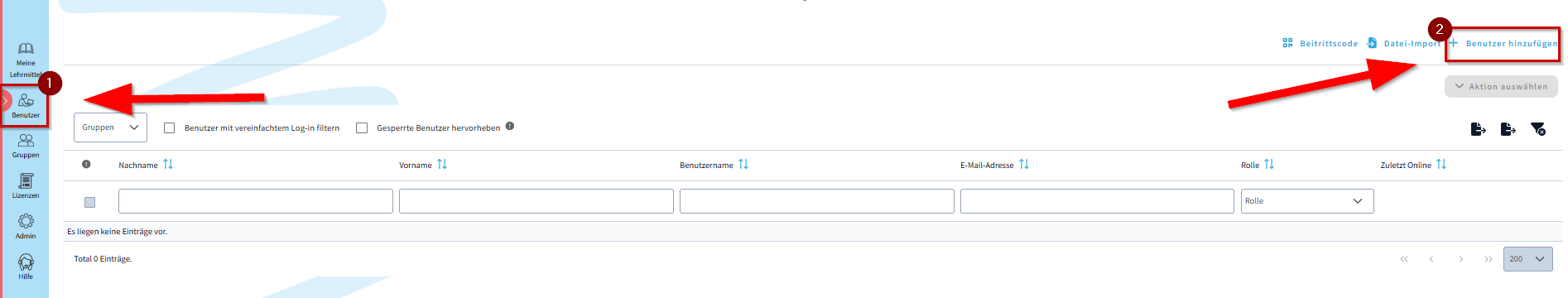 Bestehende Benutzer mit E-Mail-Adresse hinzufügen Über die Funktion Benutzer hinzufügen kann man nicht nur neue Benutzer erstellen, sondern auch bestehende Benutzer hinzufügen.
